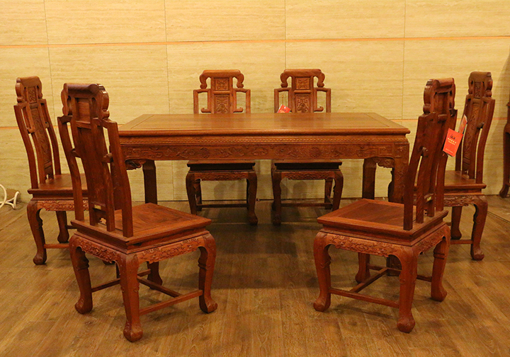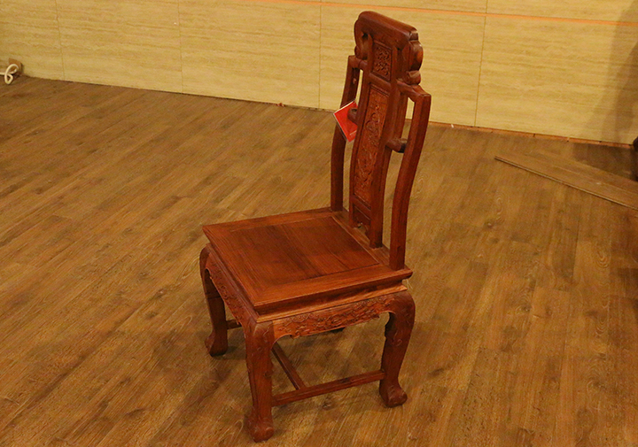 在自己實(shí)際的日常生活當(dāng)中,反而凳子用的較為普遍,一是感覺使用起來比較方便隨意,二是不用像椅子那么占用地方空間。印象當(dāng)中餐椅用到較多的場所,多是些高檔的餐館酒店禮堂,那一張張大大寬敞的圓形餐桌再環(huán)繞搭配上一面面靚麗白凈的椅靠背板配之的餐椅,多數(shù)帶有些歐式風(fēng)格家具的韻味,頗顯莊園親切之感,有些使人困頓閑暇陶醉恬適之意。而在那些正式莊嚴(yán)的場合,譬如舉辦婚禮、生辰大壽時亦或是為了迎接遠(yuǎn)方來賓,餐椅的選擇和搭配就更顯得重要和講究了,而今天,同樣筆者要給大家介紹的一款餐椅就是,優(yōu)質(zhì)緬甸花梨(學(xué)名:大果紫檀)制作的松鶴延年餐椅,一起來看看吧:
