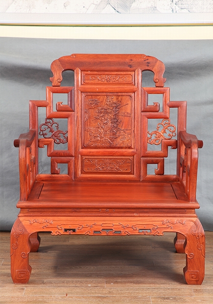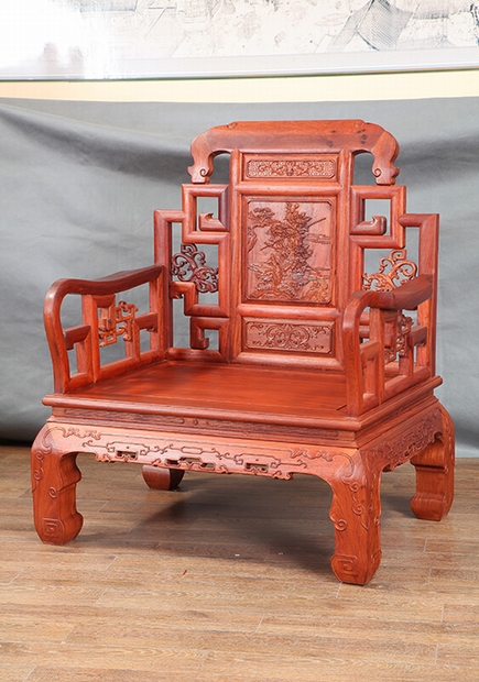 沙發(fā)大略的細(xì)節(jié)紋飾圖案均雕繪在了正面的靠背板處,在其它部位,除了座位面四周的墊面處以及四只座腳的表面有幾些邊條紋飾稍加修幅外,都不加任何的修飾,極盡木材原始之紋路,真實(shí)而自然。扶手處的設(shè)計(jì)線條感極具曲線美,并在側(cè)面同樣以多處面積的鏤空作為處理,與沙發(fā)整體之設(shè)計(jì)風(fēng)格保持了一致,譬如屏風(fēng)給人的感覺(jué)一般,隱約中透露著含蓄之美,這也是中國(guó)風(fēng)理念的一處極好展現(xiàn)。