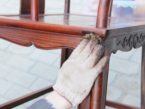 如果紅木家具不小心刮傷,但未觸及漆膜下的木質,可用棉布蘸少許熔化的蠟液,涂在漆膜刮傷處,覆蓋傷痕。待蠟