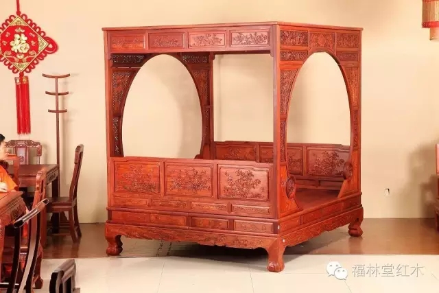 福林堂紅木-精品緬花-無漆燙蠟工藝-架子床